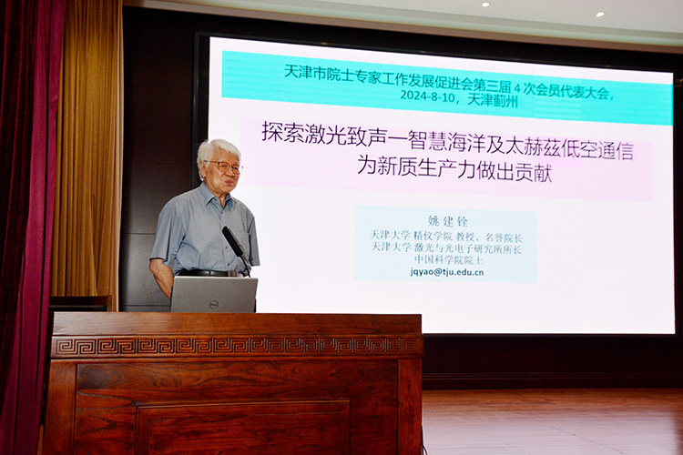 會(huì)議上,中國(guó)科學(xué)院院士、促進(jìn)會(huì)顧問姚建銓教授,以“搞好激光致聲—智慧海洋及太赫茲低空通訊探索為新質(zhì)生產(chǎn)力做出貢獻(xiàn)”為題,對(duì)激光致聲、光電科技、低空飛行經(jīng)濟(jì)和國(guó)防科技運(yùn)用等方面為與會(huì)企業(yè)進(jìn)行了科普,并對(duì)未來相關(guān)科技發(fā)展趨勢(shì)進(jìn)行了預(yù)測(cè)。姚院士講座聲頻并茂、深入淺出,采用講解與互動(dòng)方式,使大家感到受益匪淺。