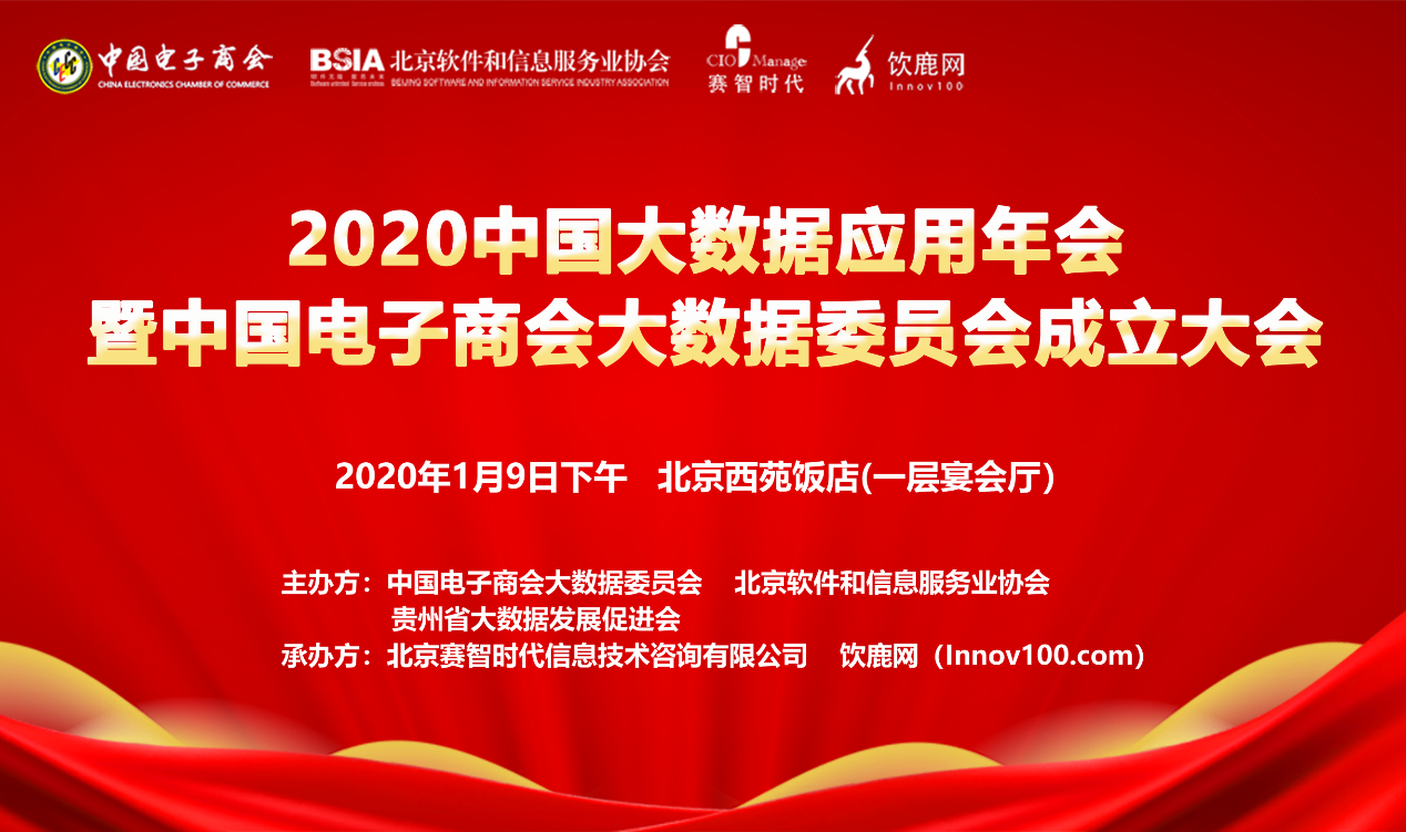 在此背景之下,由中國(guó)電子商會(huì)大數(shù)據(jù)委員會(huì)、北京軟件和信息服務(wù)業(yè)協(xié)會(huì)、貴州省大數(shù)據(jù)發(fā)展促進(jìn)會(huì)主辦,北京賽智時(shí)代信息技術(shù)咨詢有限公司、飲鹿網(wǎng)(Innov100.com)承辦的2020中國(guó)大數(shù)據(jù)應(yīng)用年會(huì)暨中國(guó)電子商會(huì)大數(shù)據(jù)委員會(huì)成立大會(huì),將于2020年1月9日下午北京西苑飯店(一層宴會(huì)廳)舉辦。