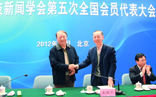 2012年12月9日,中國(guó)科技新聞學(xué)會(huì)第五次全國(guó)會(huì)員代表大會(huì)在北京科技會(huì)堂隆重召開(kāi)。與會(huì)代表認(rèn)真學(xué)習(xí)貫徹十八大精神,審議通過(guò)了第四屆理事會(huì)的工作報(bào)告、關(guān)于修訂學(xué)會(huì)章程的報(bào)告和財(cái)務(wù)工作報(bào)告;選舉產(chǎn)生了第五屆理事會(huì),中國(guó)科協(xié)原書記處書記宋南平同志當(dāng)選為理事長(zhǎng),許英當(dāng)選秘書長(zhǎng)。