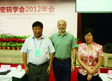 汪學(xué)明(左)與國(guó)際著名密碼學(xué)家Adi Shamir教授(中)等合影