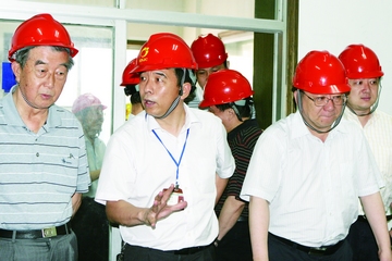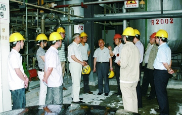 李大東院士(左一)與中石化石油化工科學(xué)研究院院長龍軍(前右一)到湖南建長參觀指導(dǎo)