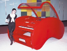 如果不說這是一架鋼琴,你可能會認為畫面中是一輛紅色的小汽車 —— 這就是在釣魚臺國賓館引起轟動的那架科曼創(chuàng)意鋼琴。這架奇特的鋼琴至少在5個方面體現(xiàn)了創(chuàng)新的價值。