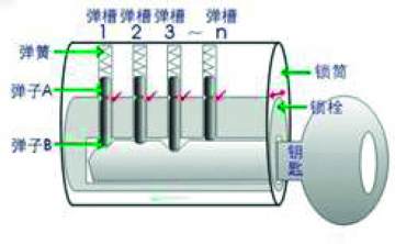 圖3.彈子鎖 a鎖具結(jié)構(gòu)圖