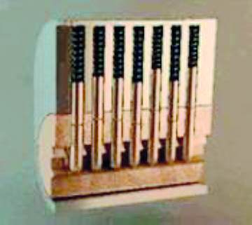 18世紀初英國人D•波特發(fā)明了凸輪轉(zhuǎn)片鎖(圖2)。其鑰匙編號由三簧鎖的20多種發(fā)展到80多種。到了19世紀中葉,歐洲制造商在凸輪轉(zhuǎn)片鎖和三簧鎖的基礎(chǔ)上改制成了滑動轉(zhuǎn)片鎖,其鑰匙編號可達1600種。1848年,美國人L•耶爾發(fā)明了采用圓柱形銷栓的彈子鎖,該鎖已成為世界上使用最普遍的鎖?,F(xiàn)代彈子鎖(圖3)的結(jié)構(gòu)又有了新的發(fā)展,出現(xiàn)雙向、三向、四向彈子結(jié)構(gòu),以及平面、雙面、多面、雙排雙面、多排多面彈子結(jié)構(gòu)和組合彈子結(jié)構(gòu),從而大大提高了鎖的保密性能,使鎖的編號由原有的2500種通過“向”、“面”的變化達到百萬種。上世紀50年代,成本較低的焊鉤鎖、葉片鎖(圖4)、彈子鎖陸續(xù)進入我國市場,中國古鎖從此退出了歷史舞臺。到了20世紀70年代,隨著微電子技術(shù)的應(yīng)用,逐漸出現(xiàn)了磁控鎖、聲控鎖、超聲波鎖、紅外線鎖、電磁波鎖、電子卡片鎖、八佰指紋鎖、視網(wǎng)膜鎖、遙控鎖等。