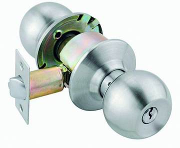 隨著時代的進步,人們不再滿足于單純的基本需求,而是開始追求生活品質(zhì),開始關(guān)注事物的美丑、關(guān)注產(chǎn)品的舒適與否,至此鎖具外觀和內(nèi)部結(jié)構(gòu)也開始因人類需求的改變而改變。為了增加鎖具的結(jié)構(gòu)強度并使它更符合人機工程學,聰明的制造者將鎖具的直線和平面部分用曲線或曲面代替,立方形用球形代替,這樣球形鎖(圖5)便誕生了。在很長一段時間內(nèi),球形鎖被大量應(yīng)用于臥室等室內(nèi)門鎖處,直至新的室內(nèi)設(shè)計風格的出現(xiàn),這股熱潮才漸漸冷卻,但這種曲線化的替換形式借鑒了第14條“曲面化的原理”。
