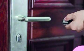 鎖發(fā)展的目的是逐步實現(xiàn)人們對鎖具能夠“開得方便,鎖得安全”的這兩項目標,而鎖具智能化就是目前技術(shù)對此的最完美表現(xiàn)?,F(xiàn)在的電子智能鎖很多,除了消費者比較熟悉的遙控鎖、密碼鎖、卡鎖外,指紋鎖(圖8 a)、虹膜鎖(圖8 b)等生物特征防盜鎖作為新一代識別技術(shù)具有比較明顯的優(yōu)勢。尤其是年輕的消費群體,對電子智能技術(shù)非常認可,這類鎖具方便、安全的優(yōu)勢也逐漸得到認可。卡式防盜鎖在消費者中使用較為廣泛,它主要分為接觸式和非接觸式兩種,且具備自動閉鎖功能。而遙控鎖(圖9)存在丟失鑰匙的風險,鍵盤鎖主要應(yīng)用于保險箱、保險柜等私人存儲設(shè)備中,生物特征類鎖具除了家庭使用外還廣泛用于金融行業(yè)中。對于家居智能系統(tǒng),目前最先進的是電子防盜報警鎖,其綜合了防盜鎖和報警器的優(yōu)勢特點,在遇到撬鎖或者技術(shù)開鎖時就會自動報警并啟動自動閉鎖功能,閉鎖后除非將鎖體破壞,否則鎖不會被打開。