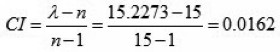 然后對判斷矩陣的一致性進行檢驗:
