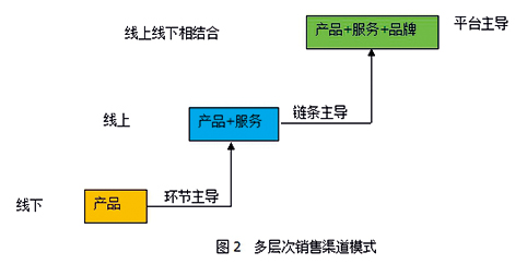 在互聯(lián)網(wǎng)時代下,科學的做法就是結(jié)合傳統(tǒng)銷售渠道與新型銷售渠道構建多方式、多層次的銷售渠道模式,形成以產(chǎn)品為核心的線下銷售渠道(產(chǎn)業(yè)鏈環(huán)節(jié)主導)、以產(chǎn)品+服務為核心的線上銷售渠道(鏈條主導)、以產(chǎn)品+服務+品牌為核心的O2O渠道(平臺主導),也就是利用TRIZ創(chuàng)新方法的中介物原理,為買方和買方搭建一個相互聯(lián)系、共同交流交易的網(wǎng)絡營銷平臺,形成線上線下結(jié)合的平臺化營銷模式,如圖2所示。