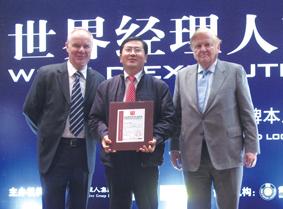 張明玉教授參加世界經(jīng)理人頒獎典禮,右為諾貝爾經(jīng)濟(jì)學(xué)獎獲得者蒙代爾,左為牛津大學(xué)市場營銷系主任。