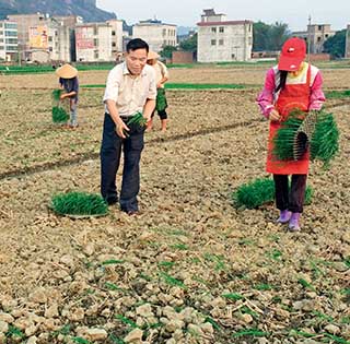 水稻粉壟干土拋秧種植法。稻田經(jīng)干田粉壟深耕深松28~30厘米后,采用干土直接拋秧后回水種植水稻的新方法,節(jié)耕、節(jié)水、省工、高效,稻田內(nèi)的土壤、肥料和水幾乎不外流,改變?nèi)藗儗ΨN植水稻一腳泥滿手臟的“怕農(nóng)”觀念,是一種首創(chuàng)耕種方式。