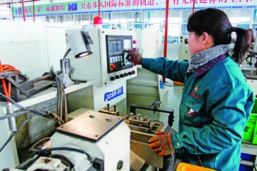 扳口加工從最初一名工人8小時(shí)內(nèi)只能生產(chǎn)400余個(gè),經(jīng)過技術(shù)改造與設(shè)備升級(jí)后,陸續(xù)變成了每人每天8小時(shí)能生產(chǎn)1200個(gè)、2500個(gè),之后演變成了5000個(gè),再后來(lái)又變成了每人每天8小時(shí),能夠同時(shí)操作3臺(tái)設(shè)備,這樣3臺(tái)設(shè)備就能生產(chǎn)15000件扳口。這就是山普公司近年來(lái)通過科技創(chuàng)新推動(dòng)企業(yè)迅速發(fā)展的奧秘之一。
