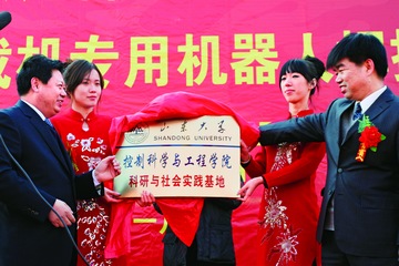 萊州市人民政府副市長(zhǎng)周濤在“山東大學(xué)控制科學(xué)與工程學(xué)院科研與社會(huì)實(shí)踐基地”揭牌