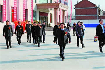 山普公司總經(jīng)理趙顯龍(前排一)陪同與會(huì)領(lǐng)導(dǎo)步入揭牌儀式現(xiàn)場(chǎng)