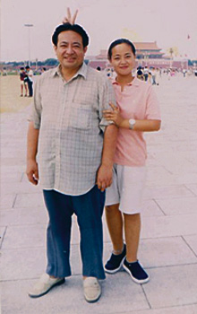 2001年吉新民和大女兒吉利在天安門廣場(chǎng)