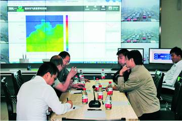 保定市環(huán)保局相關(guān)領(lǐng)導(dǎo)和中康韋爾專家在云平臺控制中心進(jìn)行空氣質(zhì)量預(yù)報預(yù)測會商