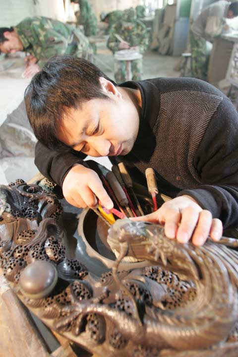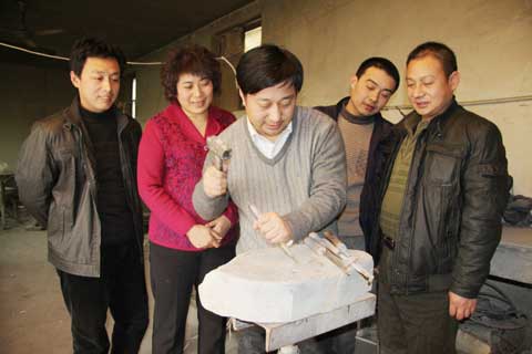 國(guó)家非物質(zhì)文化遺產(chǎn)傳承人中國(guó)制硯藝術(shù)大師鄒洪利在創(chuàng)作中