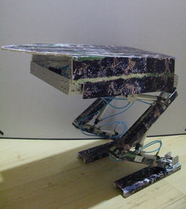 為了更好地對跳躍運動進行研究,本人選擇了比人跳躍能力更強的青蛙作為研究對象。在研究過程中通過查閱資料得知,青蛙的腿部肌肉組織有12塊。經(jīng)過篩選得到三塊主要的肌肉組織,這三塊肌肉主要控制腳的運動、小腿的運動、大腿的運動。本人通過對運動過程的觀察,得知肌肉有很大的爆發(fā)力,從而采用三個氣缸模擬青蛙的肌肉組織,利用壓縮空氣作為動力的主要來源,驅(qū)動整個青蛙實現(xiàn)跳越運動?,F(xiàn)已可以越過高13cm的障礙,跳躍距離長達50cm。