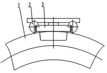 為能減小轉(zhuǎn)彎半徑,就必須盡量縮小兩個(gè)水平導(dǎo)向輪之間的距離,因此彎軌小車一般選用無輪緣車輪,同時(shí)加裝防側(cè)翻螺栓避免小車爬軌,造成側(cè)翻。雙輪彎軌小車見圖1。