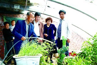 李赤泉(右三)考察“八位一體”太陽能房