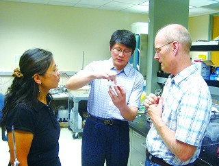 岳湘安(中)在Stanford大學(xué)進(jìn)行學(xué)術(shù)交流