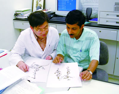彭勇(左)與印度植物分類學(xué)家Panda博士討論枸杞的分類問題