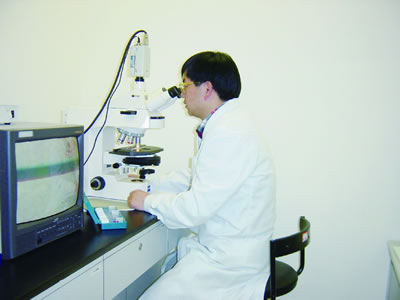 彭勇在觀察植物的顯微切片