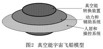 真空能飛船的能源轉換裝置如圖1所示,它是一個球體結構,這是由其內部的超高溫超高壓環(huán)境所決定的。當然一個完整的宇宙飛船還應包括驅動系統(tǒng)和人居環(huán)境,因此一個合理的宇宙飛船結構如圖2所示,飛船的中心是體積龐大的真空能轉換裝置,動力和輔助系統(tǒng)呈環(huán)帶結構圍繞在真空能轉換裝置周圍,最外側是操控系統(tǒng)和人居場所。