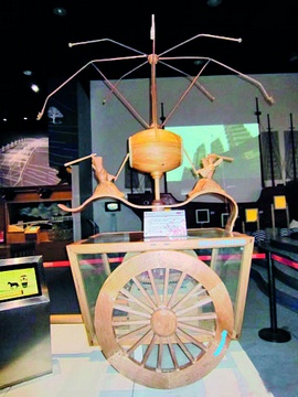 記里鼓車按照其作用而言,類似現(xiàn)代汽車上的行車?yán)锍虄x表。這種車,通過車輪的運(yùn)轉(zhuǎn),由機(jī)械人用自動(dòng)擊鼓方式,將行車的里程數(shù)表示出來?!稌x書》說:“有木人執(zhí)槌向鼓,行一里則打一槌?!薄端鍟泛汀端螘范加型瑯拥挠涊d。五代人馬縞《中華古今注》說,有一種記里鼓車,“車上有二層,皆有木人焉?!毙幸焕?上一層擊鼓;行十里,下一層擊鐘。還有一些機(jī)械人,是運(yùn)用于天文儀、計(jì)時(shí)器上,通過擊鼓、敲鐘、搖鈴的動(dòng)作來報(bào)時(shí)。