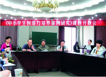 2008年教育部“中小學(xué)生創(chuàng)造力培養(yǎng)案例研究”課題開題會,羅成昌(左二)作為特邀指導(dǎo)專家講話