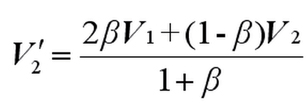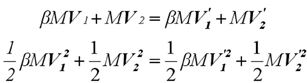 由前述可知,我們可以把單位體積的空氣看作剛性微粒,同時(shí)雪花也可以看作是剛性粒子,設(shè)其質(zhì)量為M。由于空氣沒(méi)有具體形狀,可以取與雪花同樣形狀和體積的一部分空氣,令其質(zhì)量為βM(0<β<1)。這樣空氣粒子與雪花粒子的碰撞可視為完全彈性碰撞,可利用動(dòng)力學(xué)的知識(shí)列方程組如下: