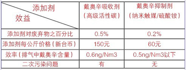 現(xiàn)行的“活性碳吸附法”和本文所提出的“納米熱/光觸媒和硫酸銨抑制法”比較即知后者遠優(yōu)于前者: