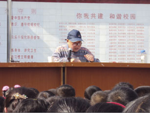 羅成昌為成都市黃田壩雙語學(xué)校(農(nóng)民工子弟校)中小學(xué)生獻(xiàn)愛心,