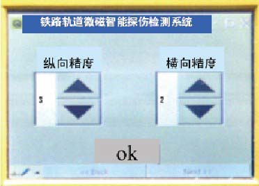 本界面主要用來設置程序的兩個閾值:橫向精度和縱向精度??梢酝ㄟ^點擊“上”或“下”來增大或減小閾值,用來設置系統(tǒng)的檢測精度。設置完畢后,點擊“確定”按鈕,系統(tǒng)返回主界面。