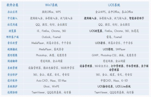 表二:UOS系統(tǒng)與Win7系統(tǒng)功能對(duì)比