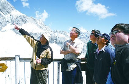 秦大河(左二)院士2009年在氣象臺(tái)站考察