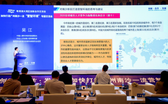 中國(guó)人事科學(xué)研究院原院長(zhǎng)、中央人才協(xié)調(diào)小組特聘專(zhuān)家、國(guó)務(wù)院創(chuàng)新驅(qū)動(dòng)發(fā)展專(zhuān)家委員會(huì)成員吳江提出,南沙要在粵港澳大灣區(qū)建設(shè)、國(guó)際人才特區(qū)等關(guān)鍵要素上下功夫,主動(dòng)創(chuàng)造出生態(tài)群落,匯聚更多人才,讓更多創(chuàng)造力在其中誕生和孕育。 “南沙有了很好的營(yíng)商環(huán)境,營(yíng)智環(huán)境是營(yíng)商環(huán)境的升級(jí)版,代表對(duì)原有營(yíng)商環(huán)境的提升。作為人才特區(qū),南沙要從‘特’字入手。此外,在大灣區(qū)的區(qū)域中,南沙應(yīng)打造區(qū)域人才、智力合作的新樣板?!眳墙f(shuō)。