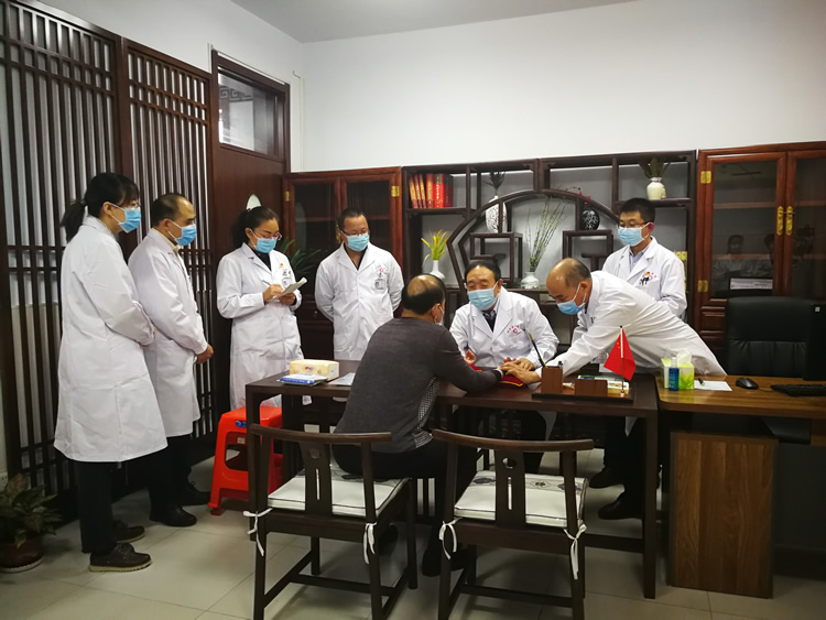 儀式結(jié)束后,李佃貴在工作室坐診。有患者慕名而來,幾名弟子跟在李大師身旁,看李大師問診施治,向李大師學(xué)習(xí)。信都區(qū)中醫(yī)院針灸科主任郭輝激動(dòng)地說,很榮幸能夠成為大師的徒弟,這個(gè)機(jī)會(huì)很難得。剛才看大師診病發(fā)現(xiàn)大師辯癥非常好,問診很詳細(xì),用藥注重清熱解毒、活血化瘀,正是他濁毒理論的體現(xiàn),很受啟發(fā),開闊了思路?;鶎俞t(yī)院的病人病種比較雜,慢性病要長(zhǎng)期恢復(fù)調(diào)理起來比較棘手,希望能借這個(gè)機(jī)會(huì)多向李大師學(xué)習(xí),提高自己的理論水平,更好地服務(wù)老百姓。