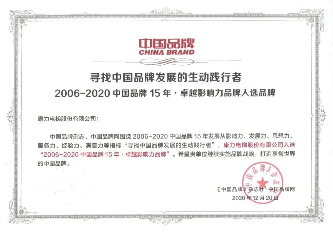 龍頭榜單·榮耀時刻!康力電梯實力入選中國品牌15年·卓越影響力品牌