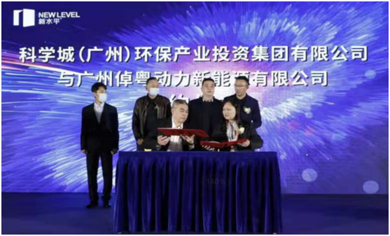 科學(xué)城(廣州)環(huán)保產(chǎn)業(yè)投資集團(tuán)有限公司董事長劉露與廣州倬粵動力新能源有限公司總經(jīng)理黎兆嶟簽約
