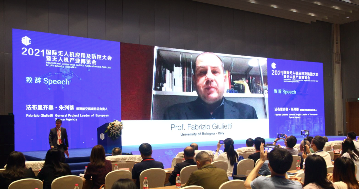 最后,由于疫情原因,國(guó)際嘉賓無法到現(xiàn)場(chǎng),意大利航空航天企業(yè)協(xié)會(huì)無人機(jī)會(huì)長(zhǎng),費(fèi)德里科先生通過視頻方式介紹了歐洲無人機(jī)市場(chǎng)以及新技術(shù)發(fā)展。