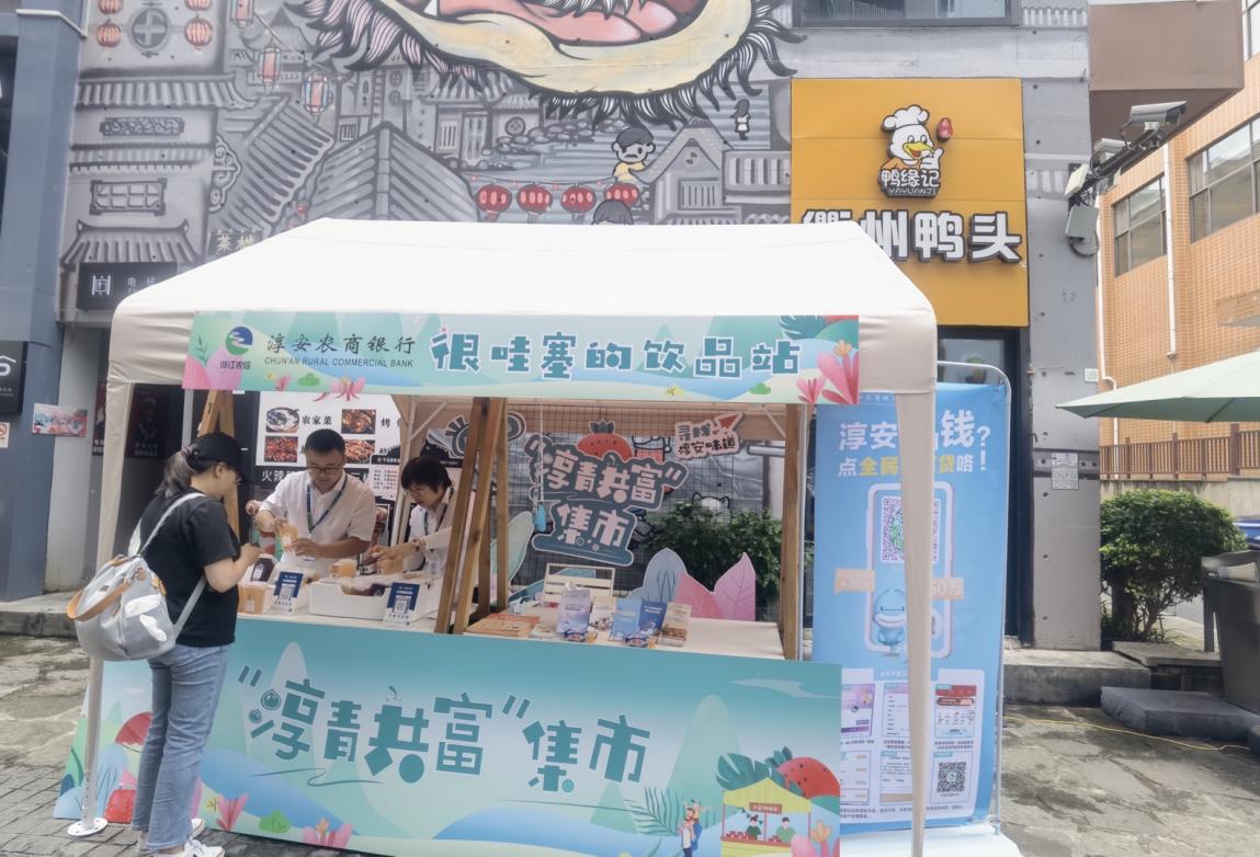 為助力縣域企業(yè)產(chǎn)品銷售,淳安農(nóng)商銀行創(chuàng)新抱團(tuán)組隊模式,牽手轄內(nèi)貸款企業(yè)客戶,每周六在“淳青共富”集市設(shè)立攤位,安排人員當(dāng)起“企業(yè)產(chǎn)品代言人”?!敖M團(tuán)總比單干強,加入聯(lián)盟組隊,除了原先350萬元的資金支持,農(nóng)商行還幫我們企業(yè)做起了推銷員。”夏首健康飲品有限公司的負(fù)責(zé)人樓明星說道。