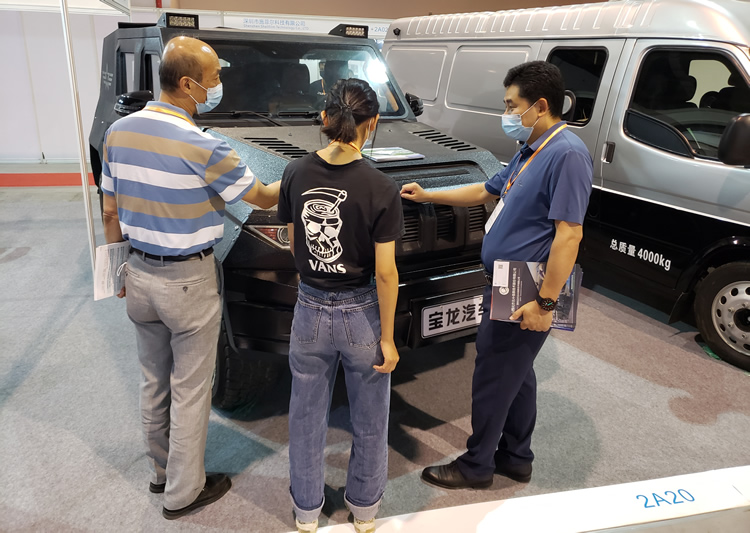 寶龍汽車的防彈車,采用安全防護(hù)解決方案,如防彈玻璃、防扎輪胎技術(shù)、高性能輕質(zhì)防護(hù)材料技術(shù)、防爆胎安全裝備技術(shù)等高科技,展會(huì)現(xiàn)場(chǎng)亦吸引眾多關(guān)注。