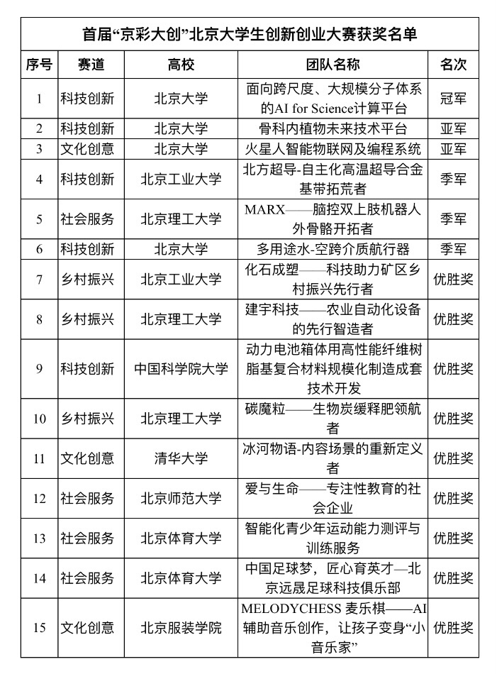 首屆 “京彩大創(chuàng)” 北京大學生創(chuàng)新創(chuàng)業(yè)大賽圓滿落幕, 北京大學項目團隊包攬冠亞軍