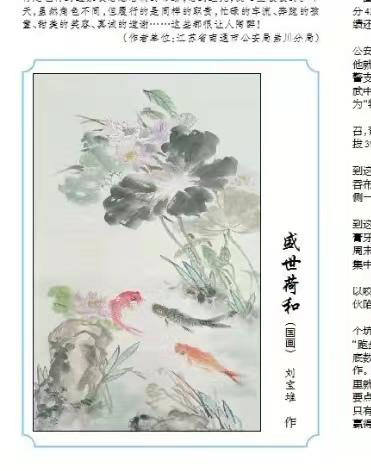 人民公安報(bào)4月19日刊載劉寶堆國(guó)畫荷花作品《盛世荷和》95x180