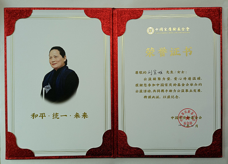劉寶堆拍賣荷花作品為涼山兒童捐款的證書