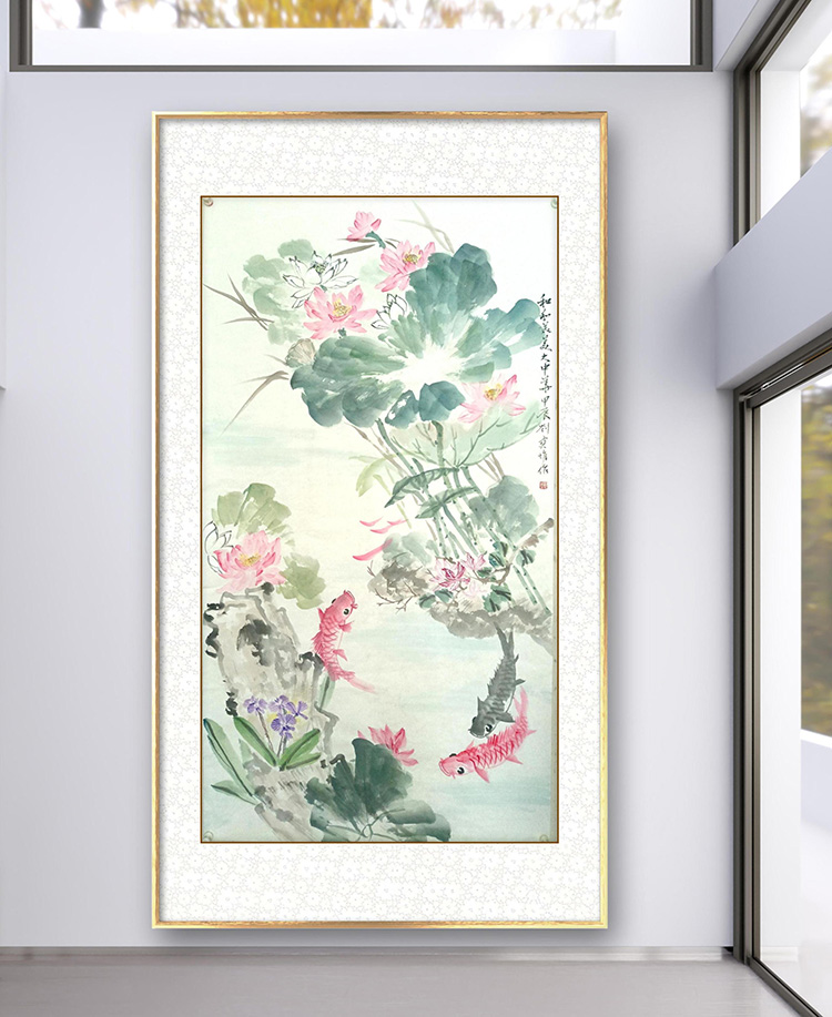 劉寶堆國畫荷花作品《和和美美大中華》95x180