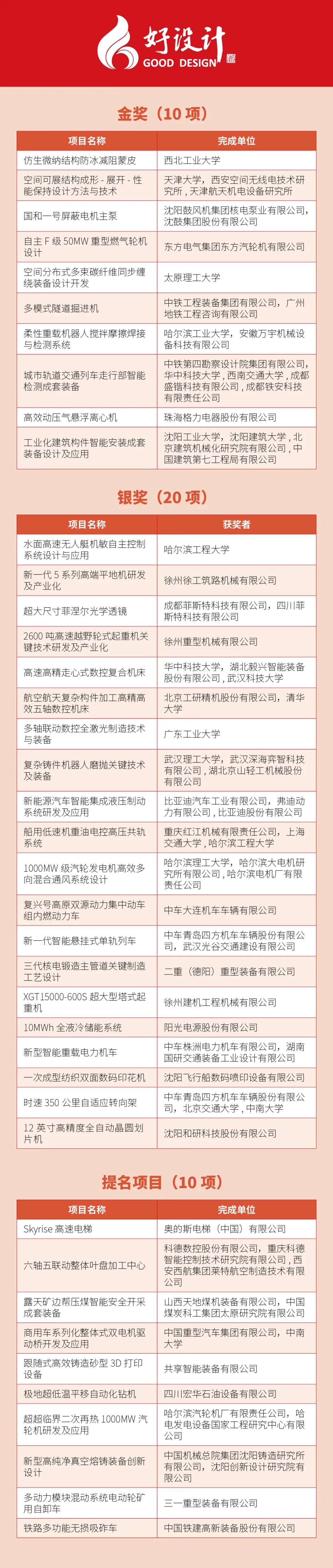中國(guó)機(jī)械工程學(xué)會(huì)副理事長(zhǎng)毛明院士致2024年度好設(shè)計(jì)獎(jiǎng)發(fā)布辭,2024第九屆好設(shè)計(jì)獎(jiǎng)由全國(guó)七大區(qū)及十五家合作伙伴組織申報(bào)和大區(qū)評(píng)選,共推出122個(gè)項(xiàng)目進(jìn)入全國(guó)評(píng)選。經(jīng)函評(píng)、初評(píng)、終評(píng)等系列評(píng)審工作,最終產(chǎn)生了金獎(jiǎng)10項(xiàng)、銀獎(jiǎng)20項(xiàng),提名10項(xiàng)。