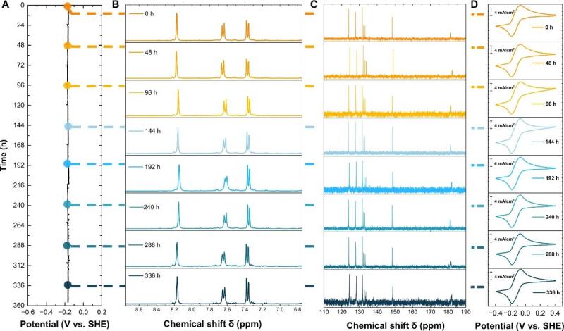 AQDS在電化學(xué)-化學(xué)反應(yīng)過程中的穩(wěn)定性測(cè)試