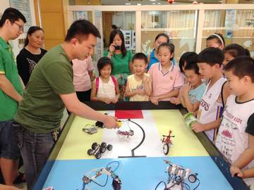 青少年科技輔導員帶領外來務工子女進行電腦機器人組裝體驗