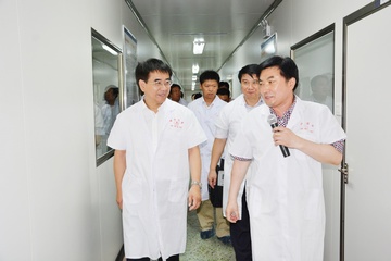 張來武副部長在濱州市委副書記、市長崔洪剛等陪同下考察山東綠都生物工程高科技園預(yù)防獸醫(yī)學(xué)與動物生物技術(shù)重點(diǎn)實(shí)驗(yàn)室